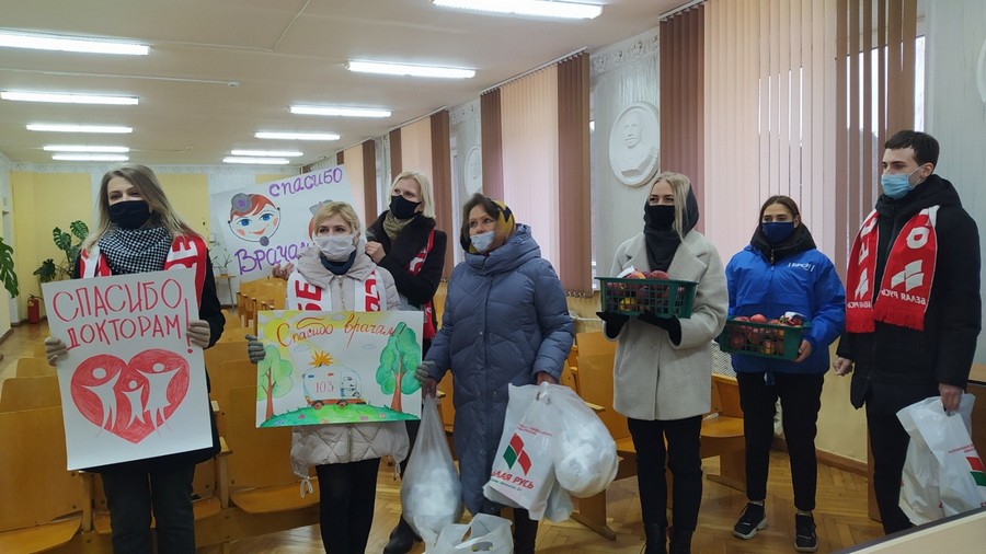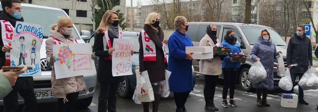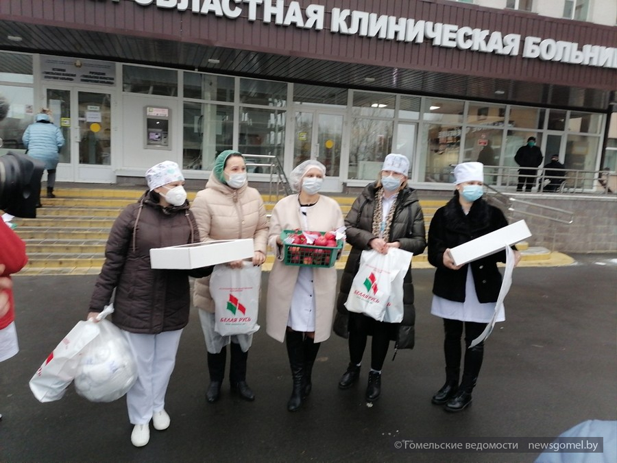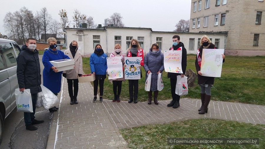 Волонтеры ОАО "Гомельский химический завод" вместе с представителями администрации Советского района и учреждений образования, а также активистами ОО БРСМ и ОО "Белая Русь" посетили Гомельскую областную клиническую больницу, городскую клиническую больницу №2, Гомельский областной клинический онкологический диспансер и поблагодарили медицинских работников за их самоотверженный труд в непростое время борьбы с коронавирусной инфекцией.