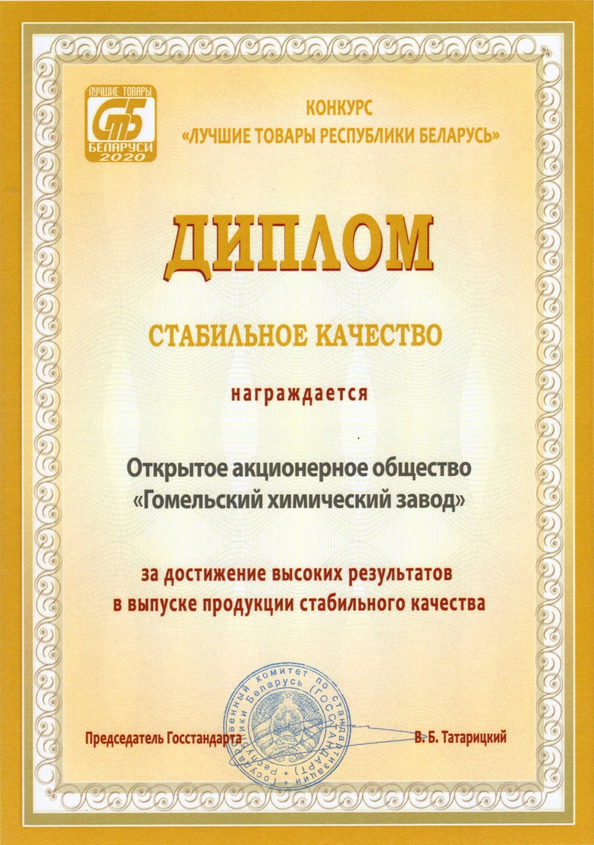 Гомельский химзавод - среди тридцати предприятий Гомельщины, которым в торжественной обстановке были вручены дипломы республиканского конкурса "Лучший товар Беларуси".