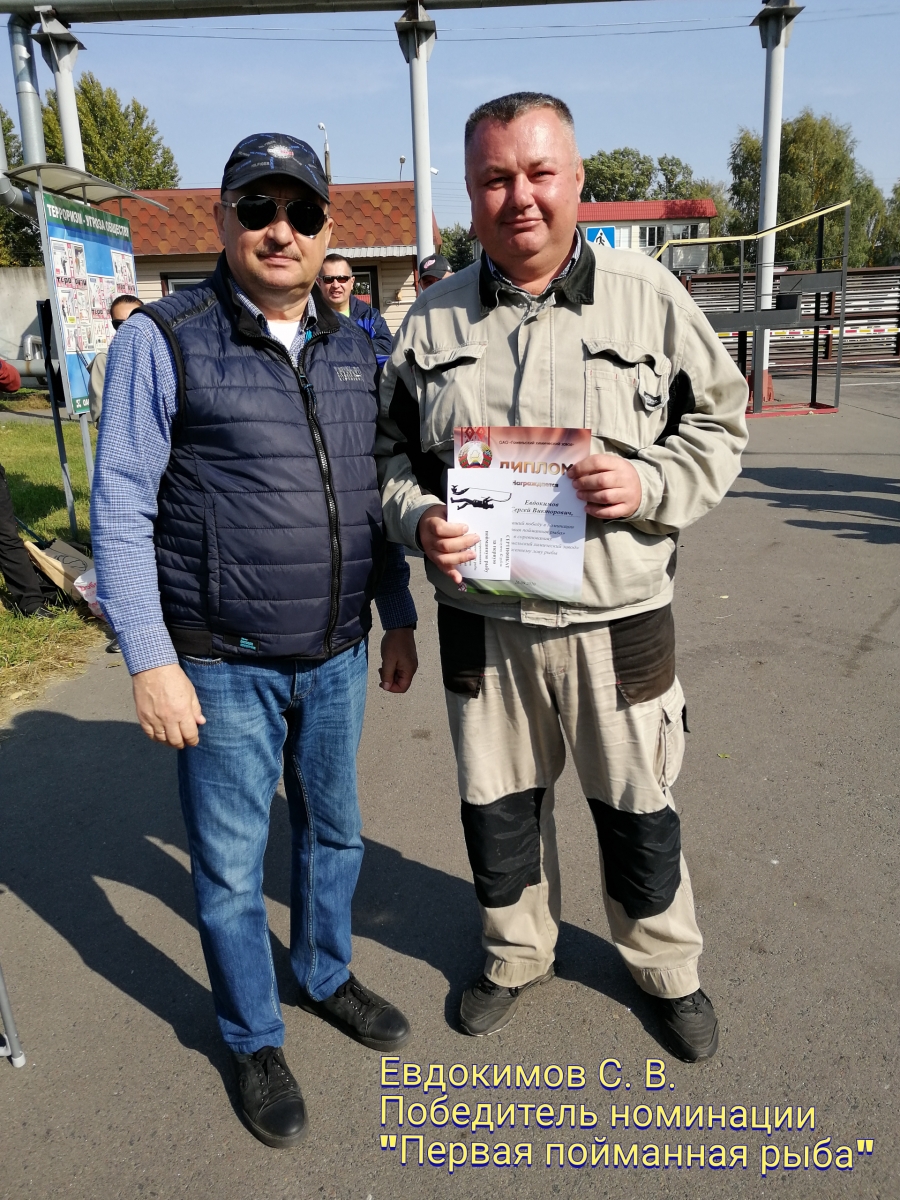 В номинации «Первая пойманная рыба» победителем стал – Евдокимов Сергей Викторович, помощник директора по сельскому хозяйству.