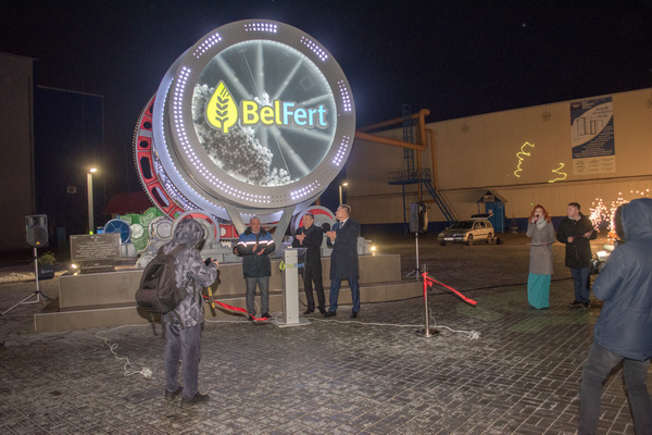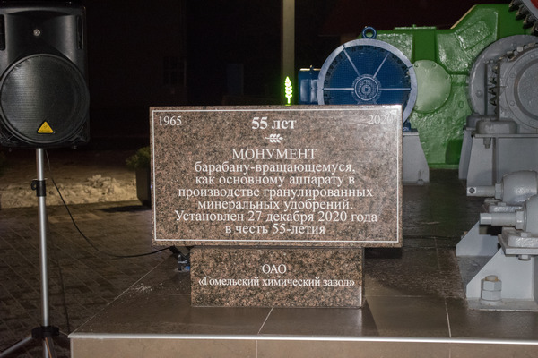 Завершило праздничный день торжественное открытие монумента гранулятору по производству минеральных удобрений на заводской площади.