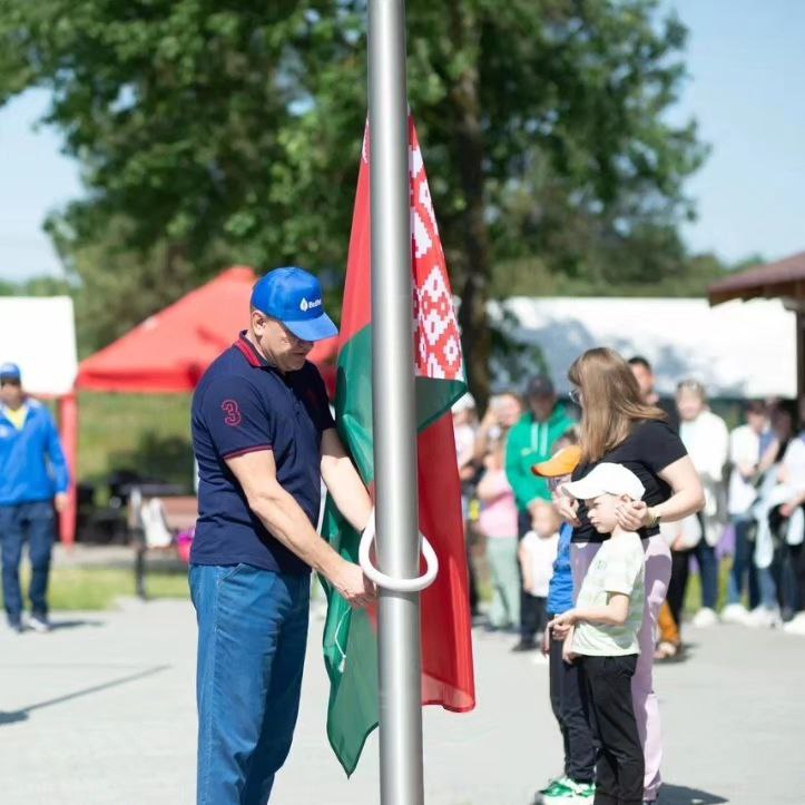 На торжественной церемонии открытия с приветственным словом к присутствующим обратился директор ОАО "Гомельский химический завод" Черняков Дмитрий Владимирович. Отметил высокий уровень подготовки и организации церемонии открытия, и, в целом, изменения и преображения территории. Поблагодарил коллектив инструкторов, которые на протяжении почти двух месяцев трудились, что бы Зона отдыха была ещё красивее, зеленее и красочнее. Пожелал всем здоровья, мира и благополучия. Торжественно поднял Государственный флаг Республики Беларусь.