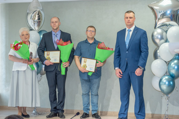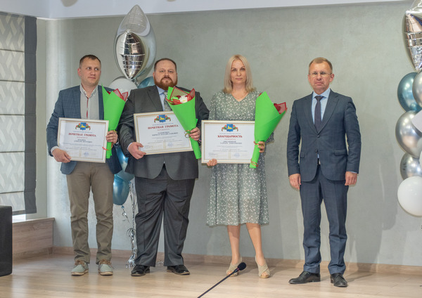 БЛАГОДАРСТВЕННОЕ ПИСЬМО Администрации Советского района г.Гомеля вручаются заместителю начальника цеха по ремонту оборудования цеха фтористого алюминия и криолита Исайчикову Дмитрию Валентиновичу, заместителю начальника цеха по ремонту оборудования цеха двойного суперфосфата Коржову Дмитрию Александровичу.
