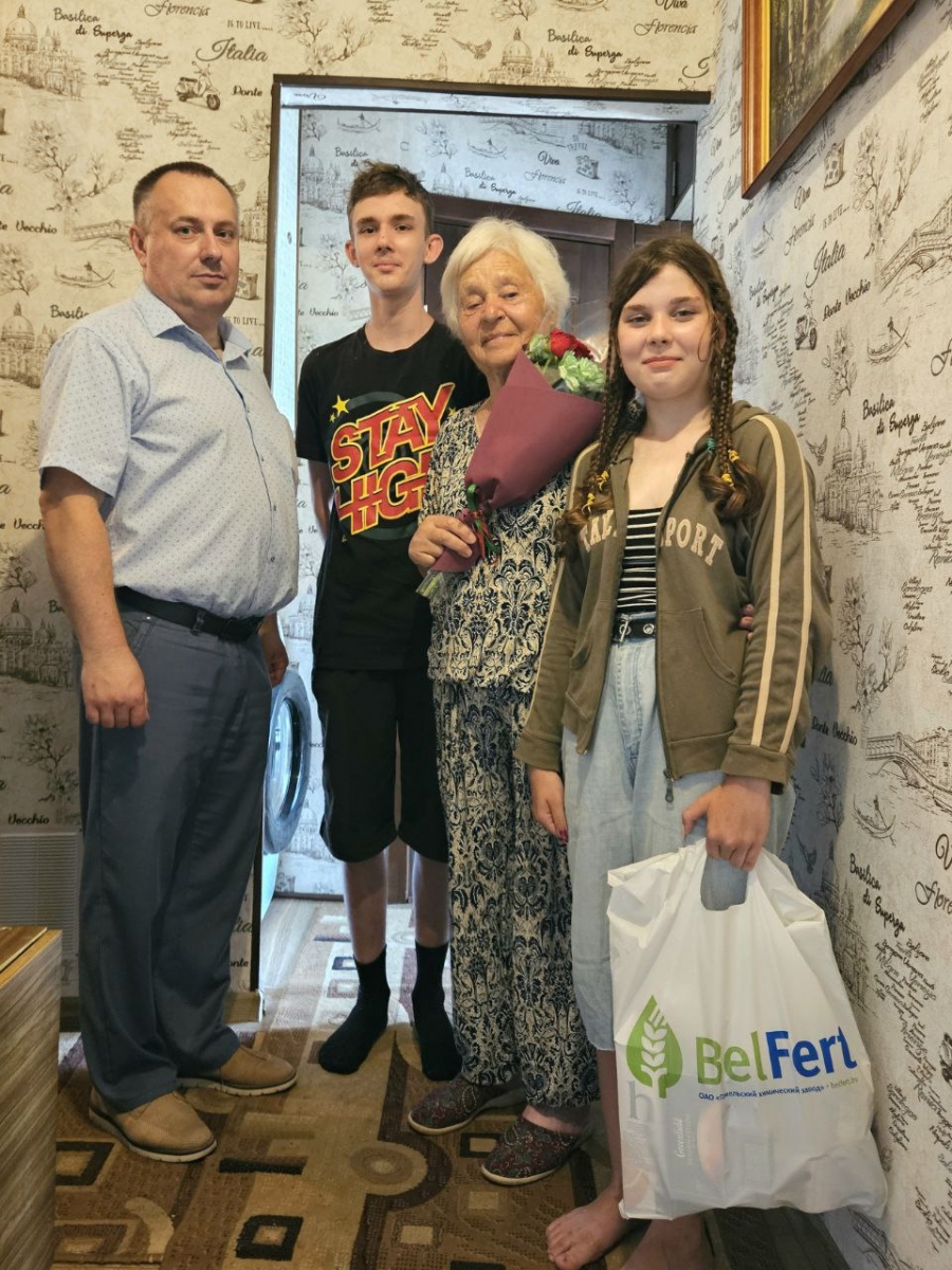 В знак уважения и признательности к героям Великой Отечественной войны, представители Профсоюза, совета ветеранов и молодежного актива Общества посетили бывших работников предприятия, а также закрепленных Администрацией района: Светлану Васильевну Журавскую, Зинаиду Ивановну Трусову, Елену Емельяновну Макущенко, Николая Михайловича Чугунова, Леонида Прокопьевича Перевощикова.