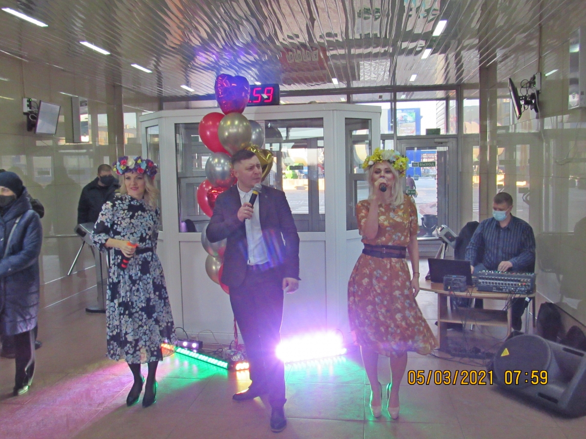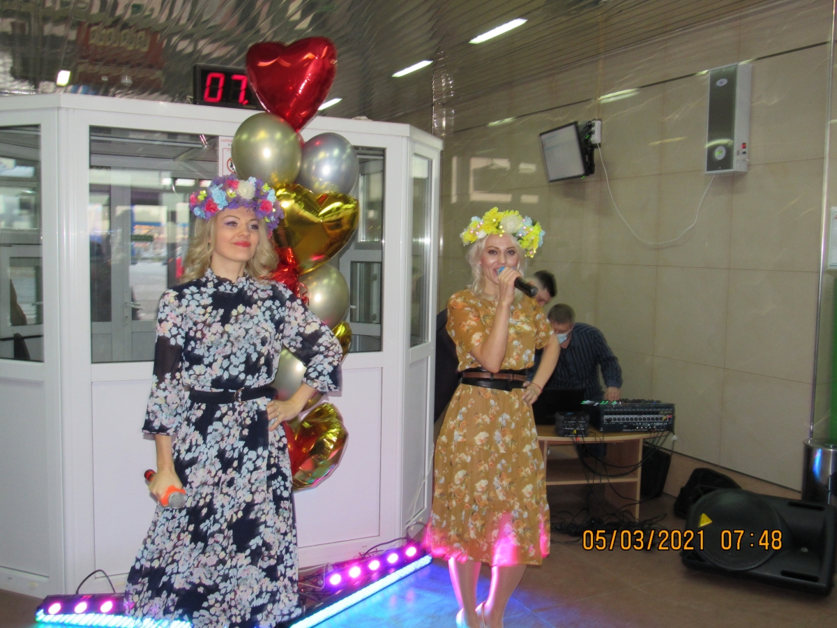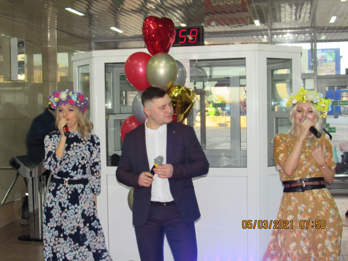 Уже стало доброй традицией встречать первый весенний праздник на проходной завода романтичными песнями, веселыми танцами и очаровательными улыбками наших артистов: Екатерины Руденко, Оксаны Сайковой и Романа Яковлева.
